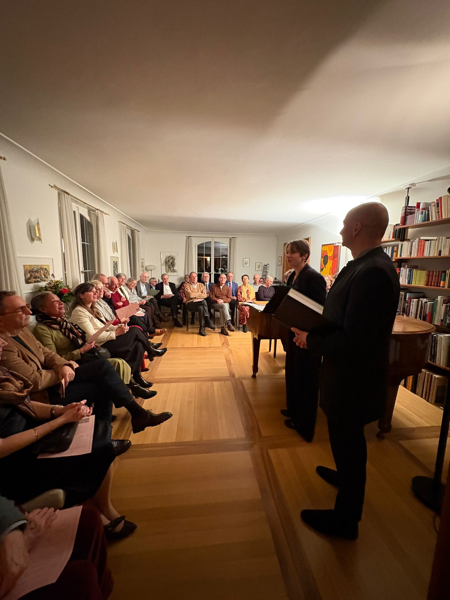 Dans une grande maison domaniale, en bordure de la ville de Fribourg, Ruth et Dominique nous accueillent chez elles pour célébrer l’anniversaire de Franz Schubert et les 10 ans de l’association Besuch der Lieder ! Au coin du feu, le Winterabend de René Perler ouvre les festivités dans un ton parfait.